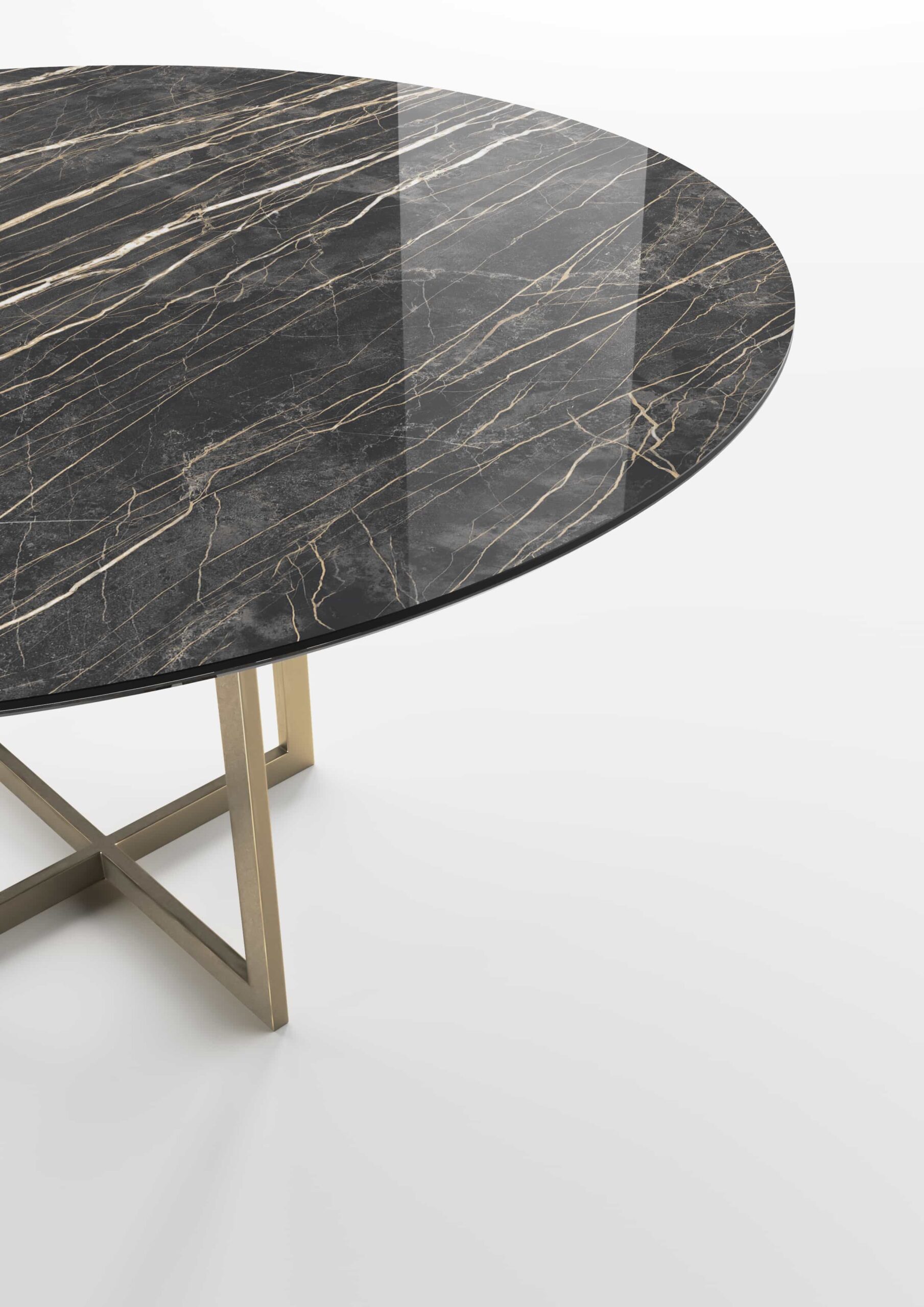 Il gres porcellanato è noto per la sua robustezza e durabilità. Abbinando lastre spesse 3 e 6 mm al vetro temperato, è possibile ottenere un top non solo esteticamente gradevole, ma anche estremamente resistente. Questo procedimento avviene sottovuoto a caldo, per garantire la perfetta fusione tra i materiali e un prodotto finale privo di imperfezioni. Grazie al taglio a 45 gradi del vetro, il bordo risulta impercettibile e privo di imperfezioni. In caso di rottura accidentale, inoltre, il tavolo si frattura senza scomporsi, garantendo massima sicurezza.